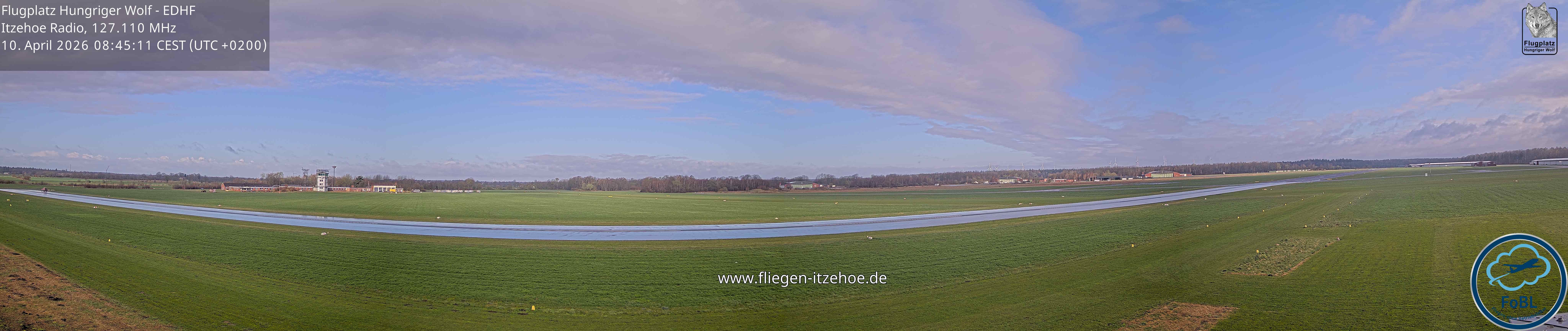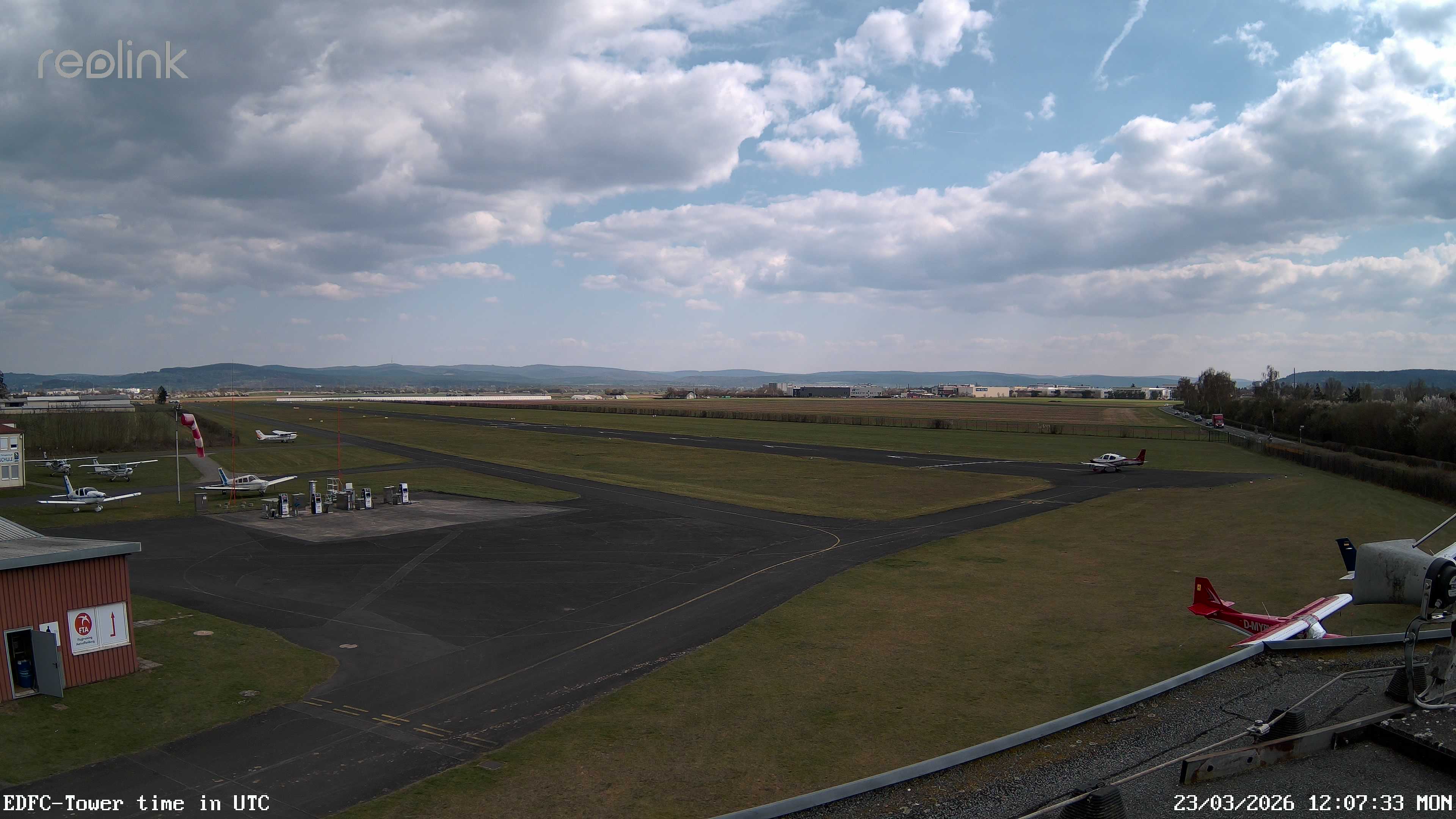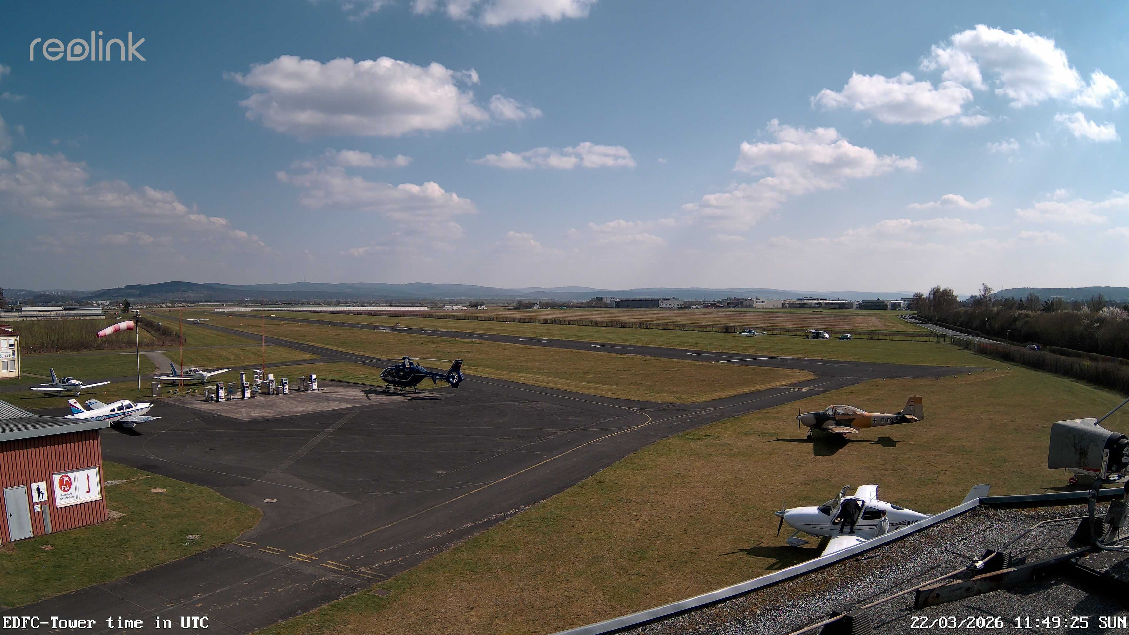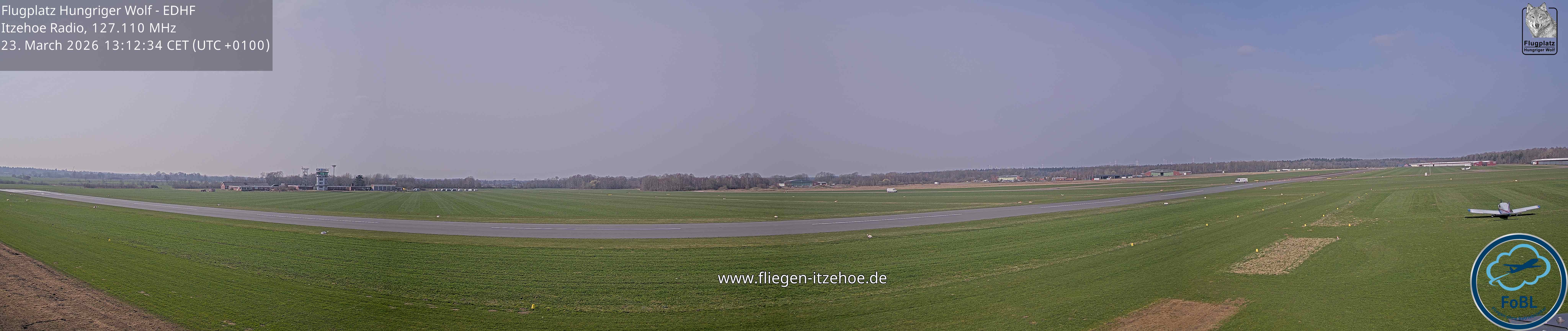 Erlebe mit der 180° Panorama-Webcam einen spektakulären Ausblick auf das Treiben am Flugplatz Gelnhausen.