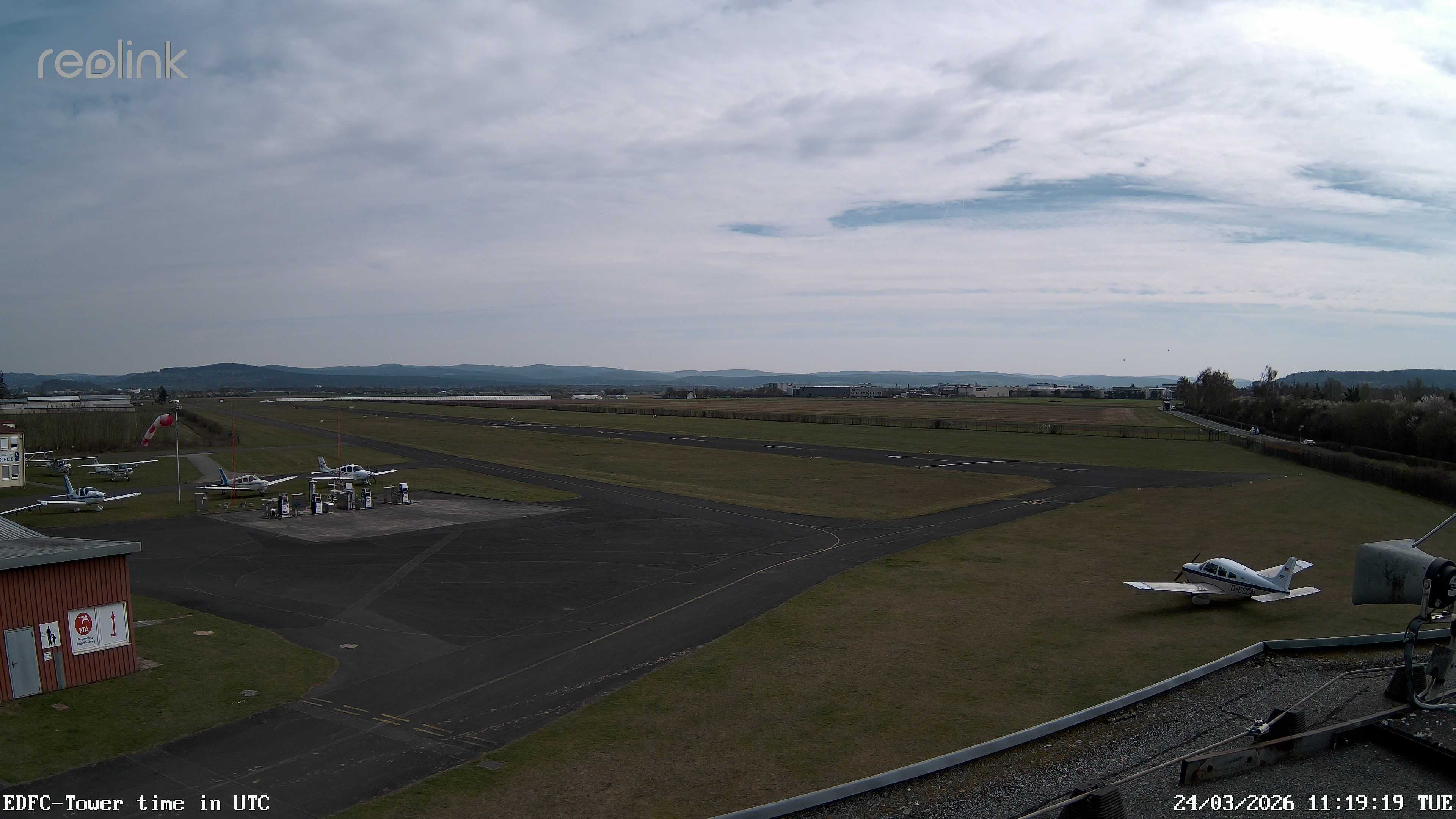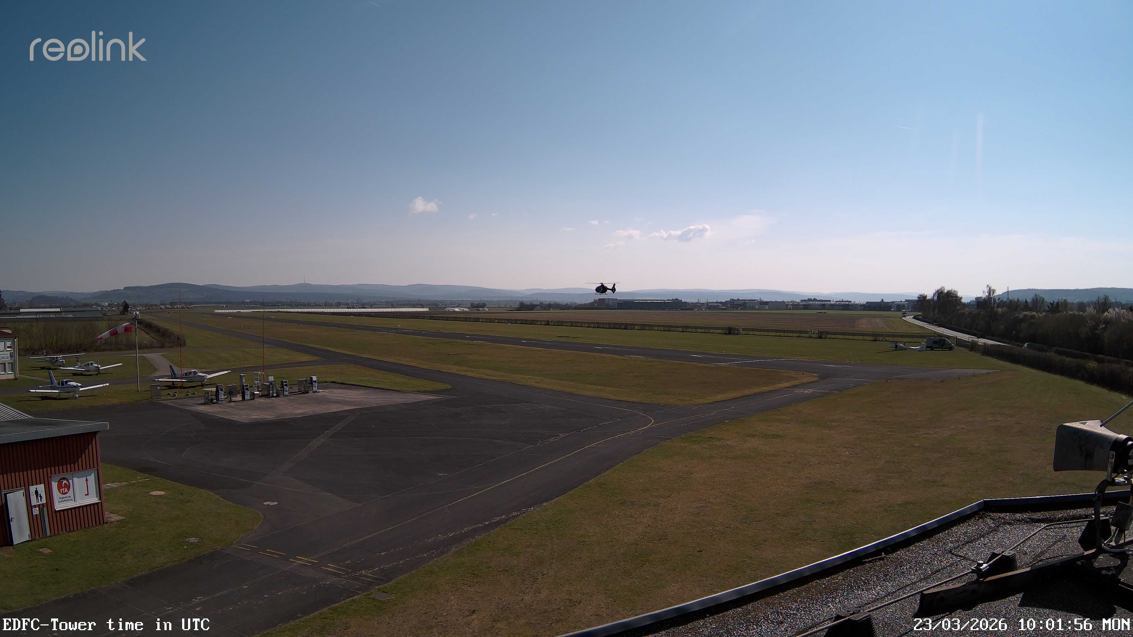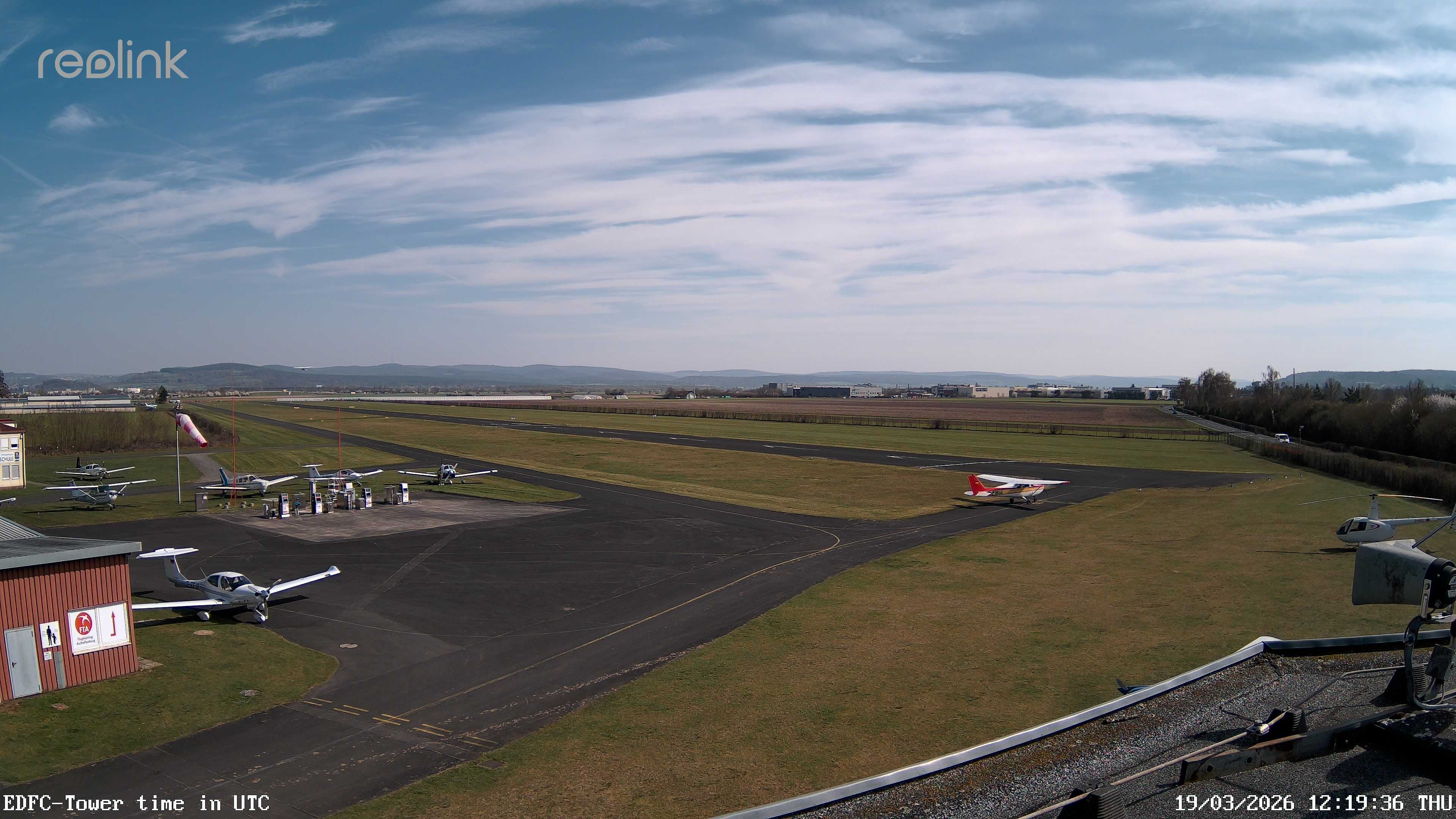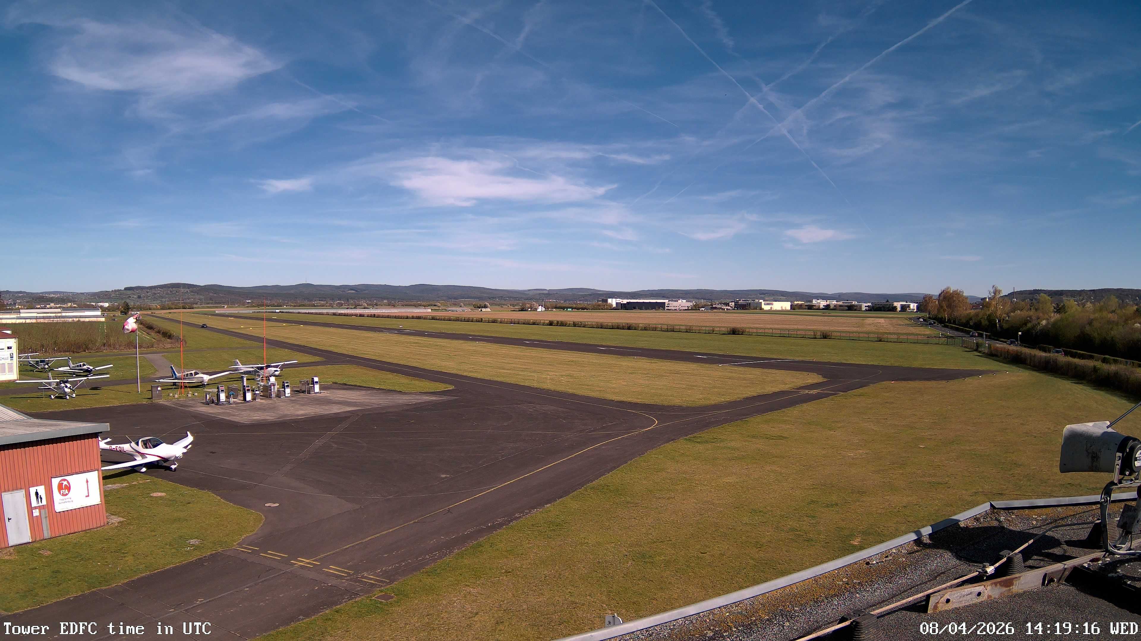 Erlebe mit der 180° Panorama-Webcam einen spektakulären Ausblick auf das Treiben am Flugplatz Gelnhausen.