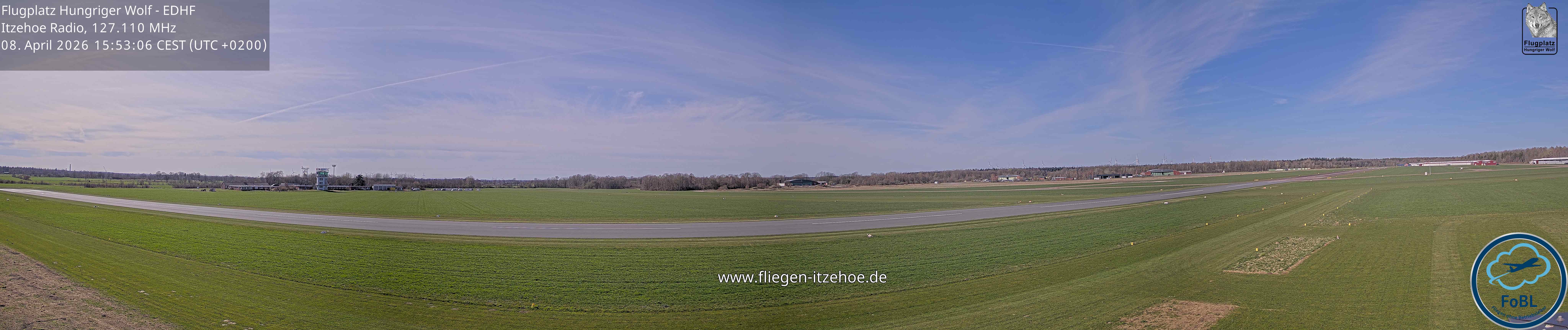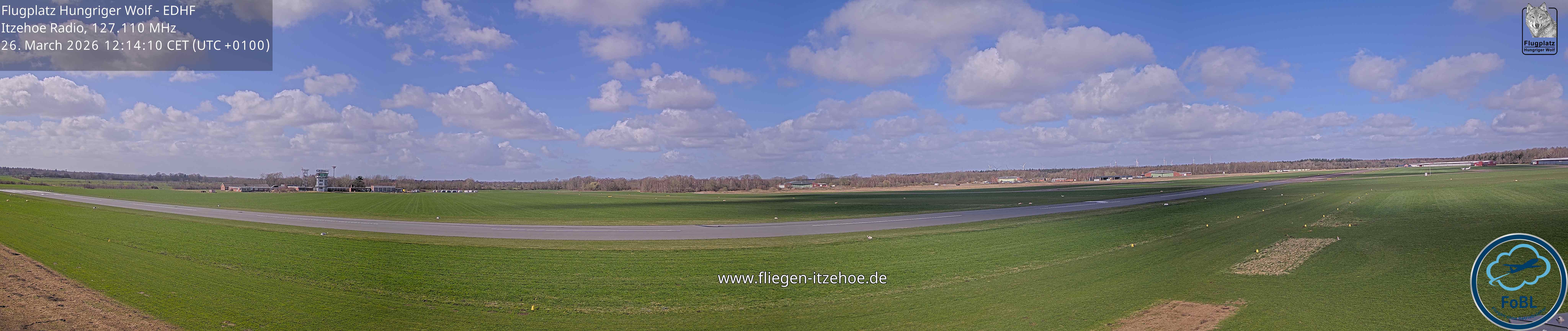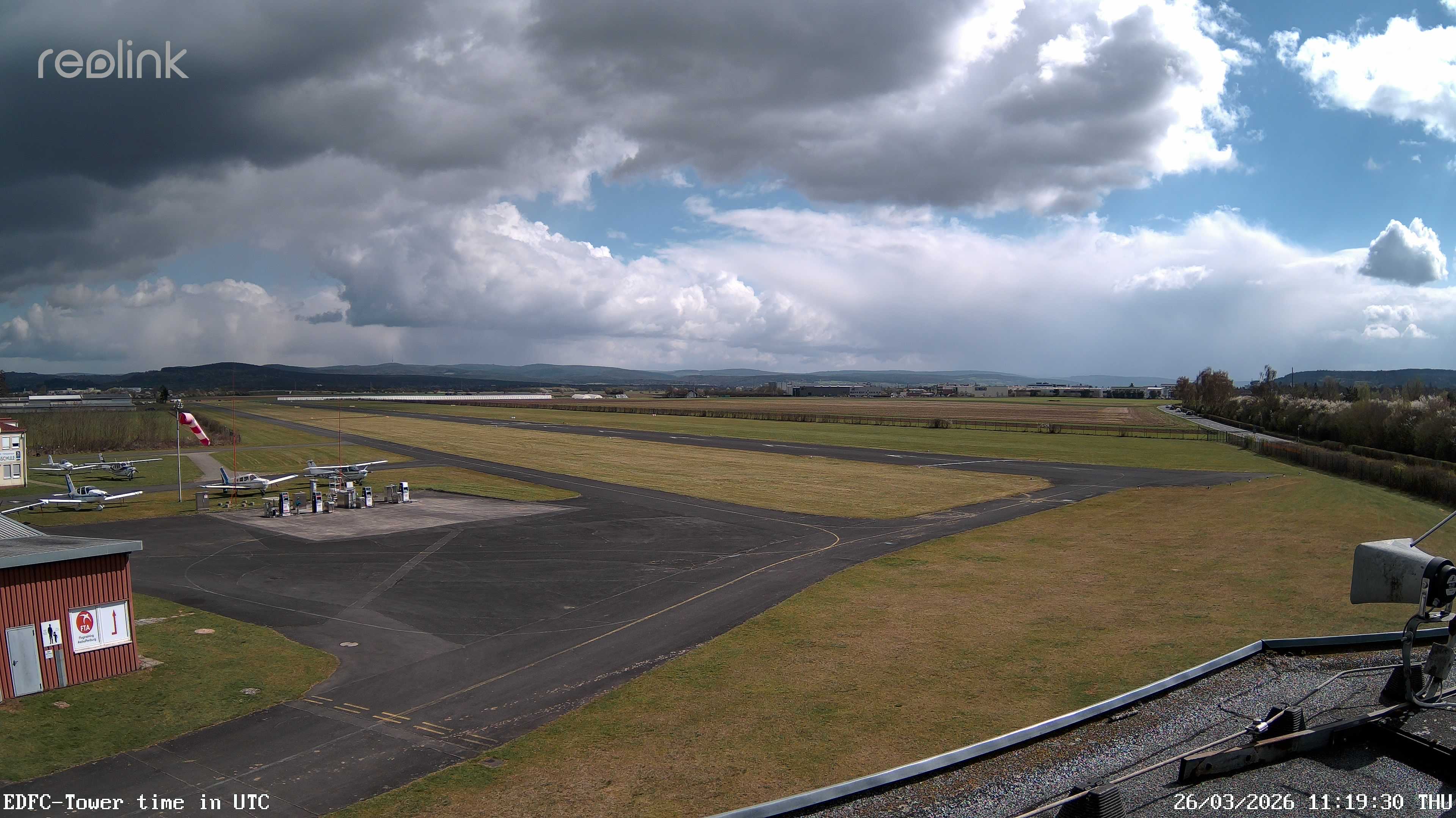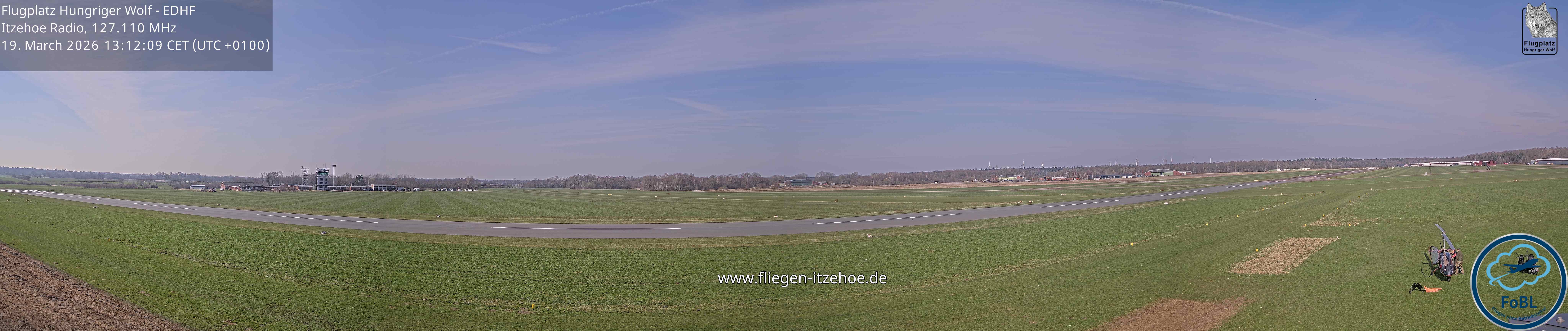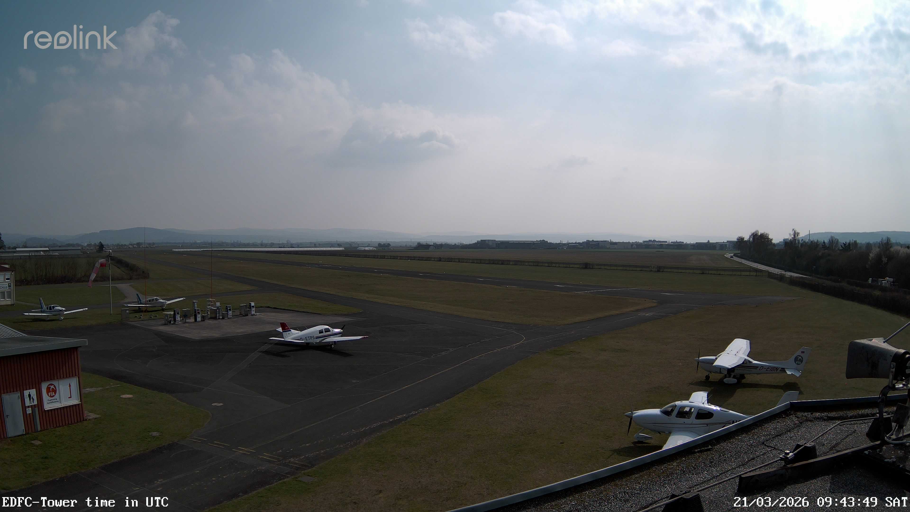 Erlebe mit der 180° Panorama-Webcam einen spektakulären Ausblick auf das Treiben am Flugplatz Gelnhausen.
