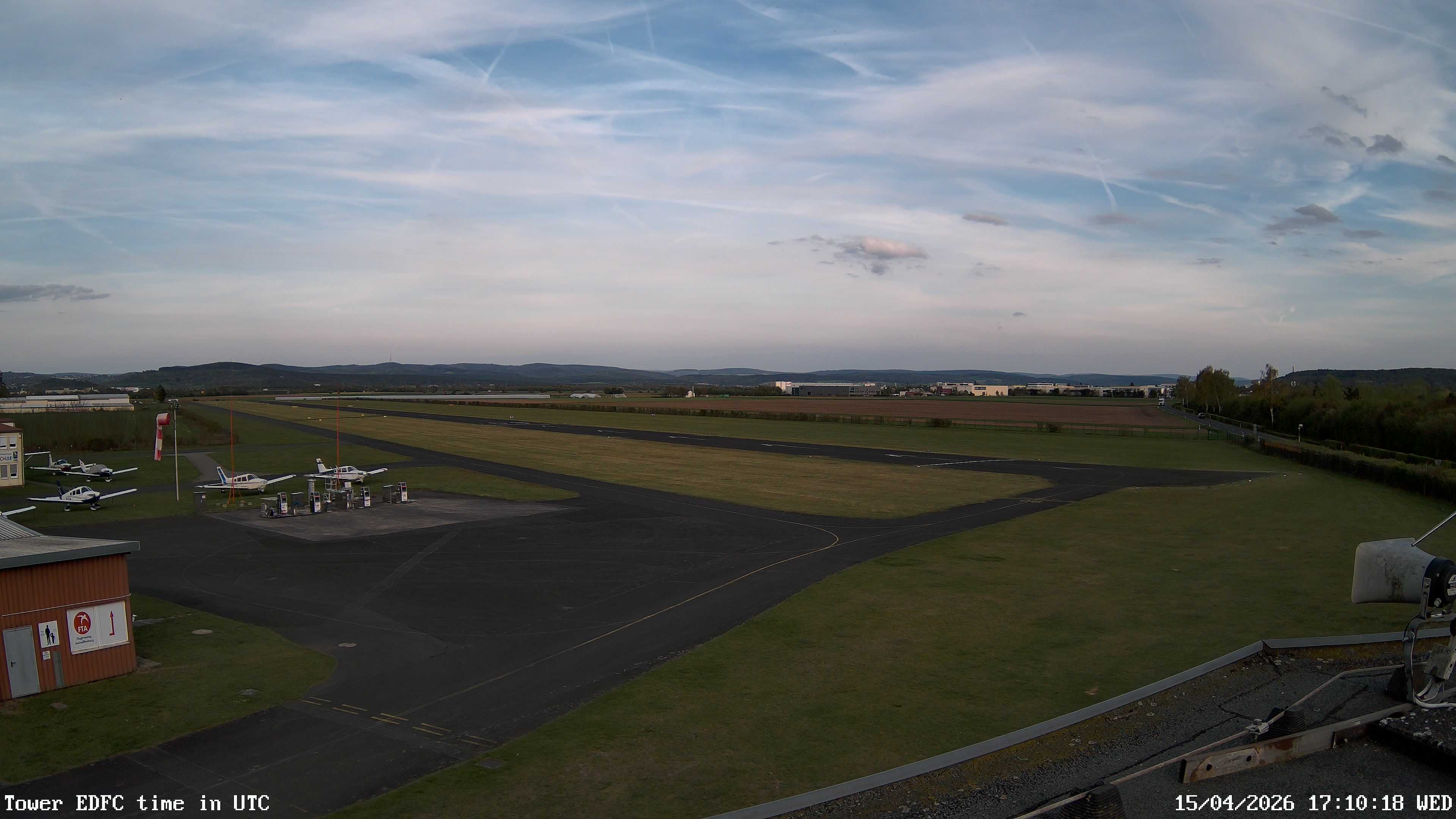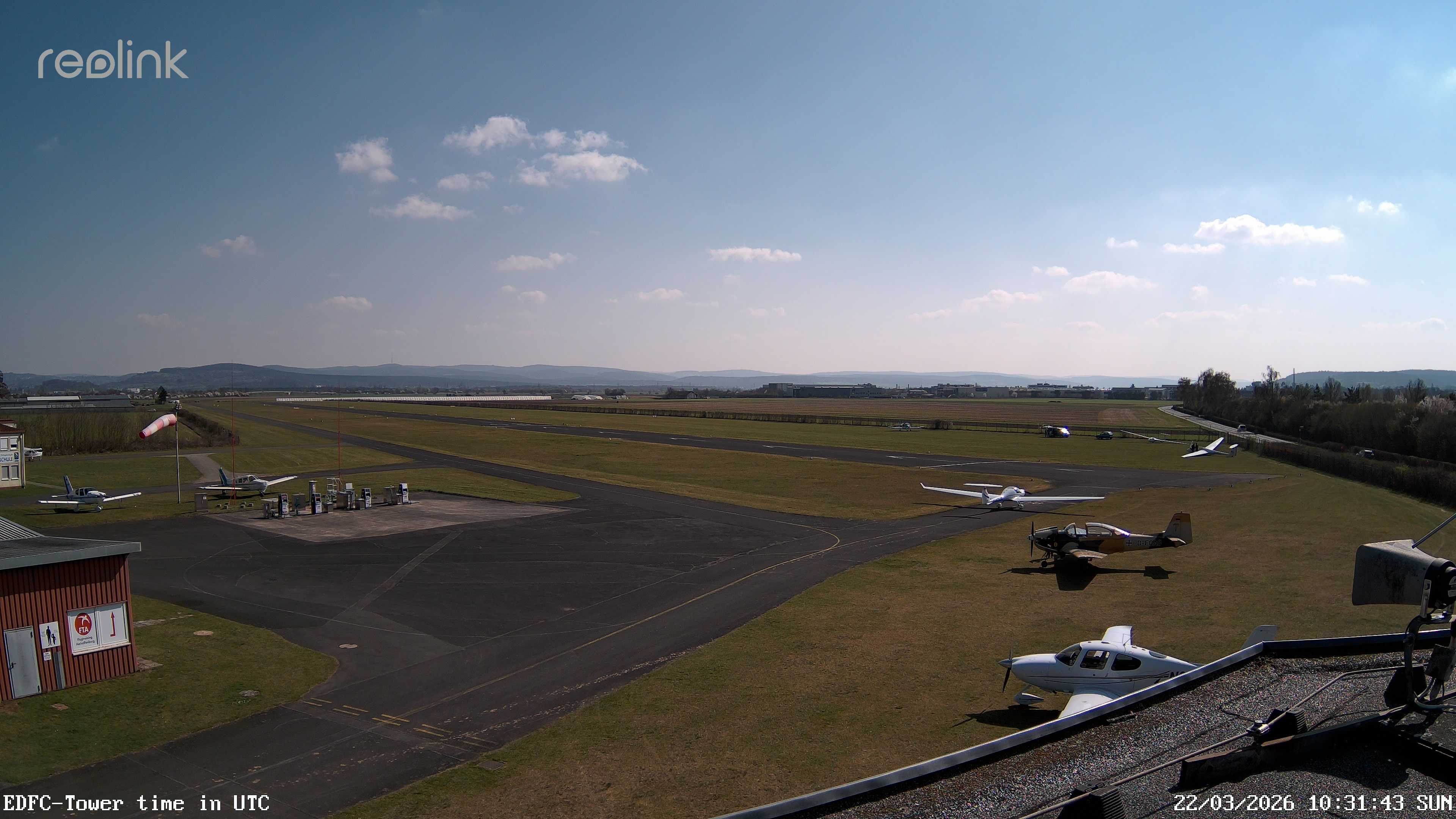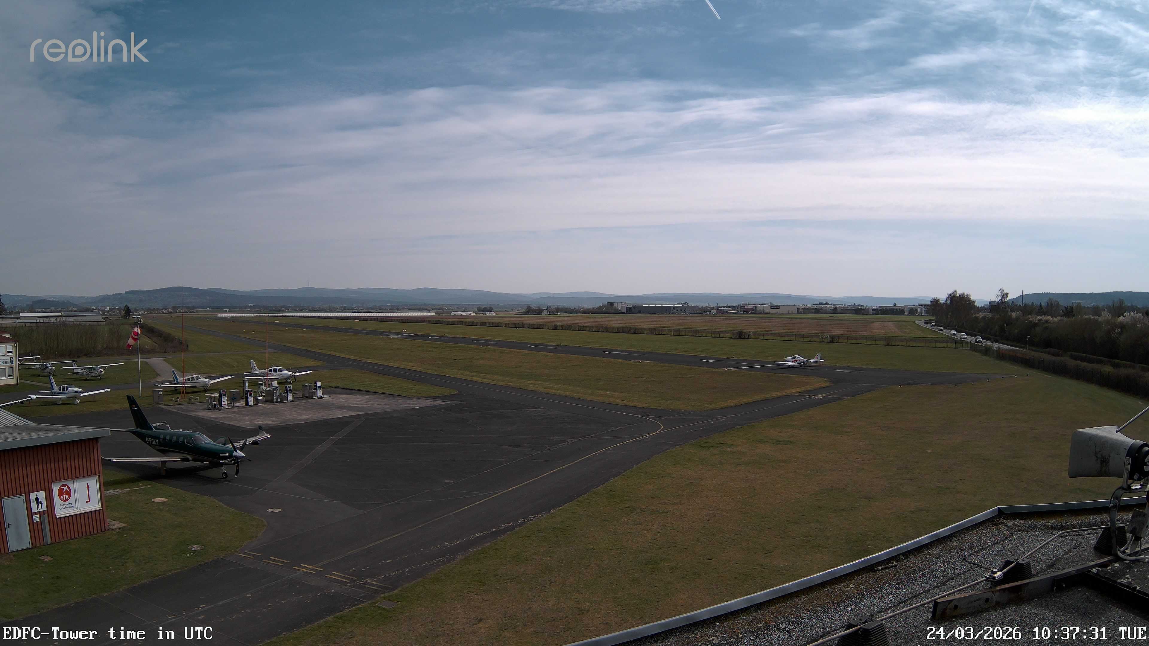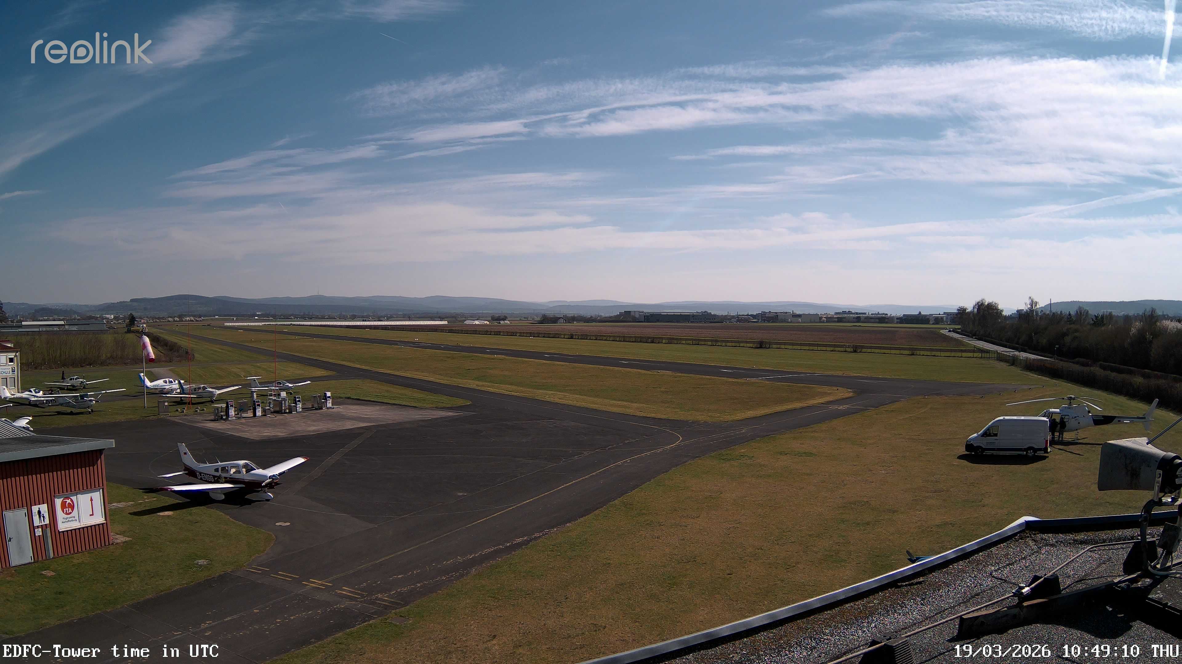 Erlebe mit der 180° Panorama-Webcam einen spektakulären Ausblick auf das Treiben am Flugplatz Gelnhausen.